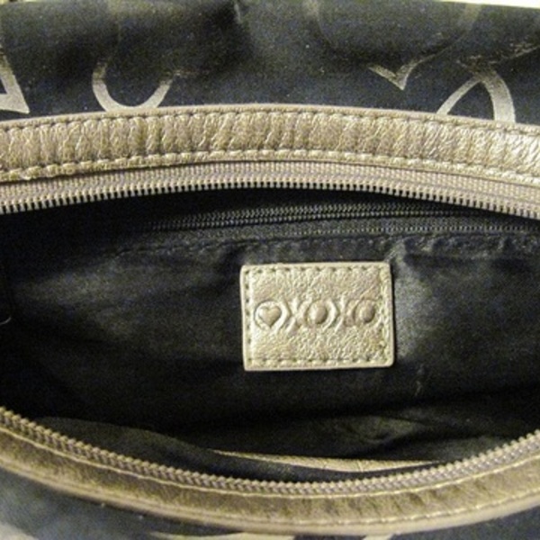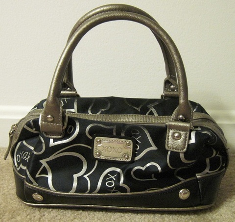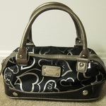 Cute little handbag. Black and silver. In decent condition, normal wear & tear. On the inside, one side has a zipper pocket, and the other side has two pockets for cell phone and makeup or something like that. Pretty roomy, can fit a lot. Recently got a similar one so it's time to let this one go.