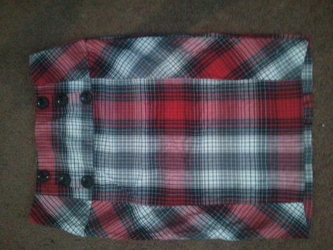 plaid, high waisted, its too the knee length, zipper and cute slit in the back, worn once