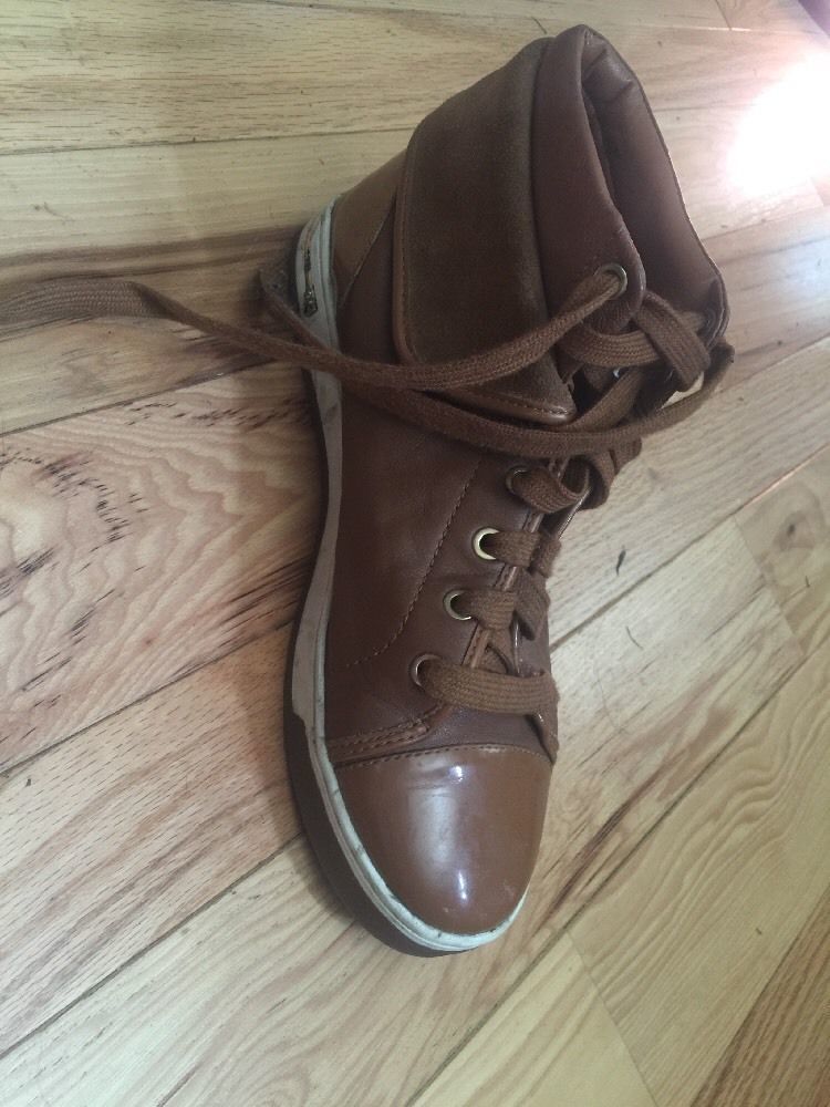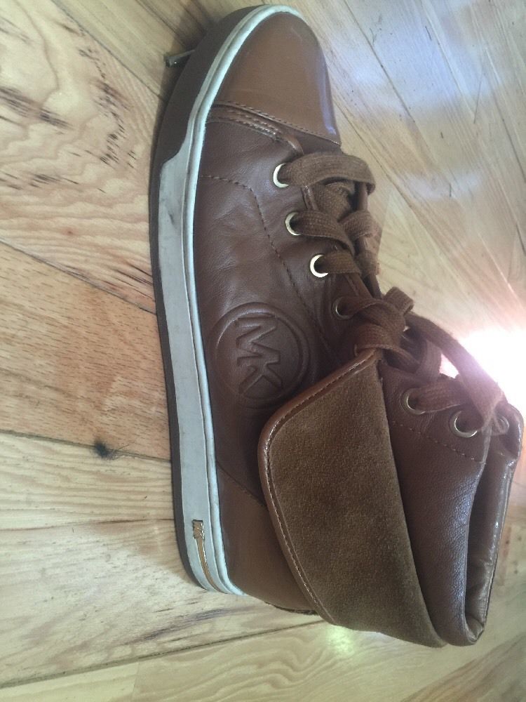Michael Kors high top sneakers size 8M. Dark tan like color. Got as a gift, Worn once, but I don't really like high tops.