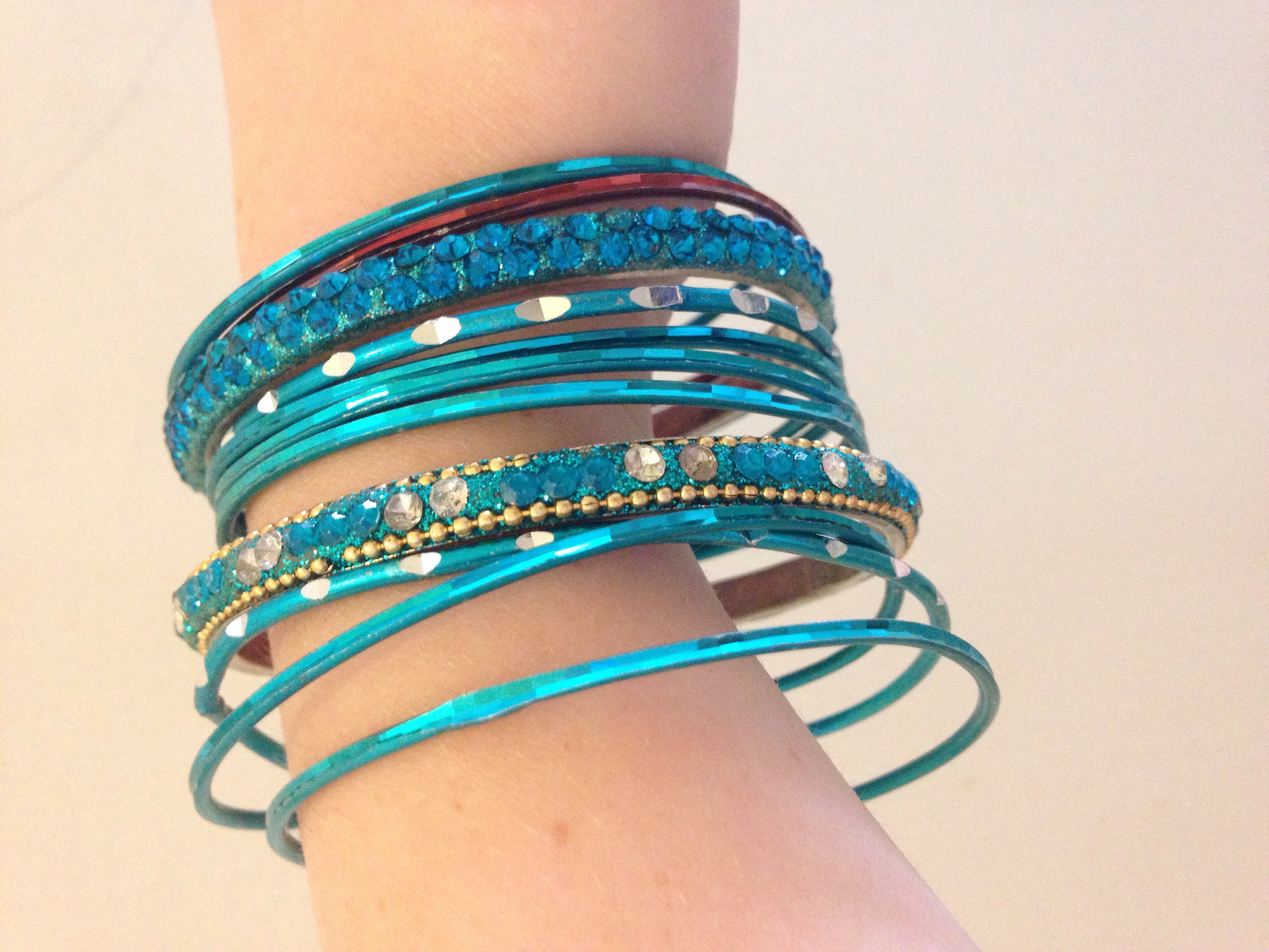 Blue jewelled bracelets