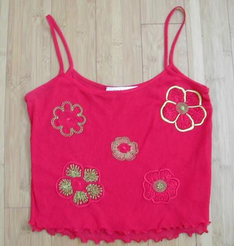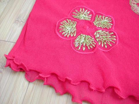 Two layers of mesh fabric with lettuce edge, front of top layer has flower embroidery, made in Italy