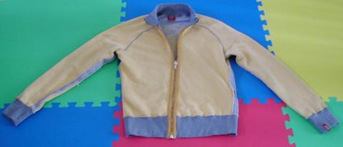 Gray on one side, yellow on the other side, with contrasting trim, cotton/polyester blend, made in Italy