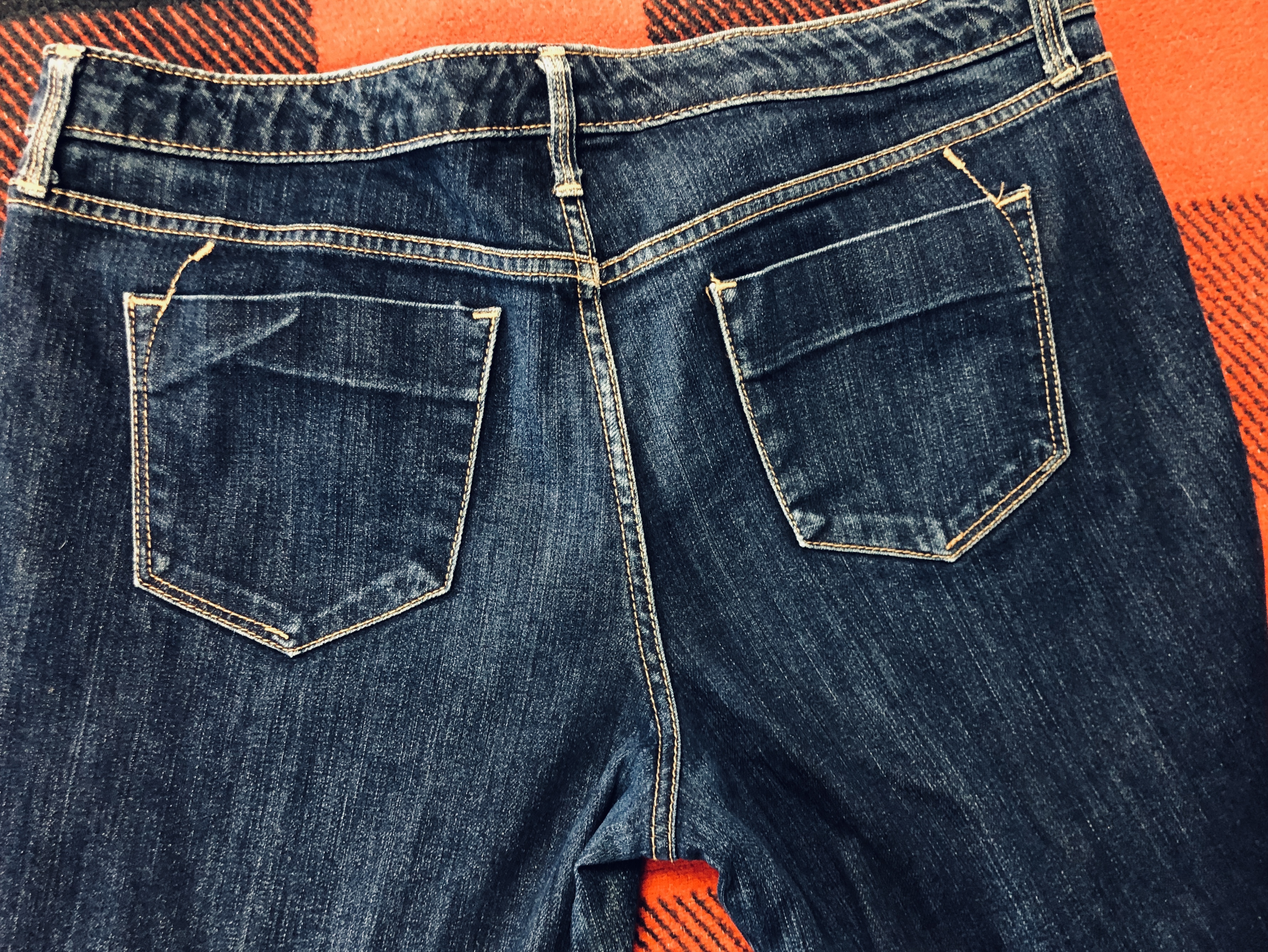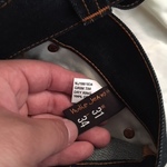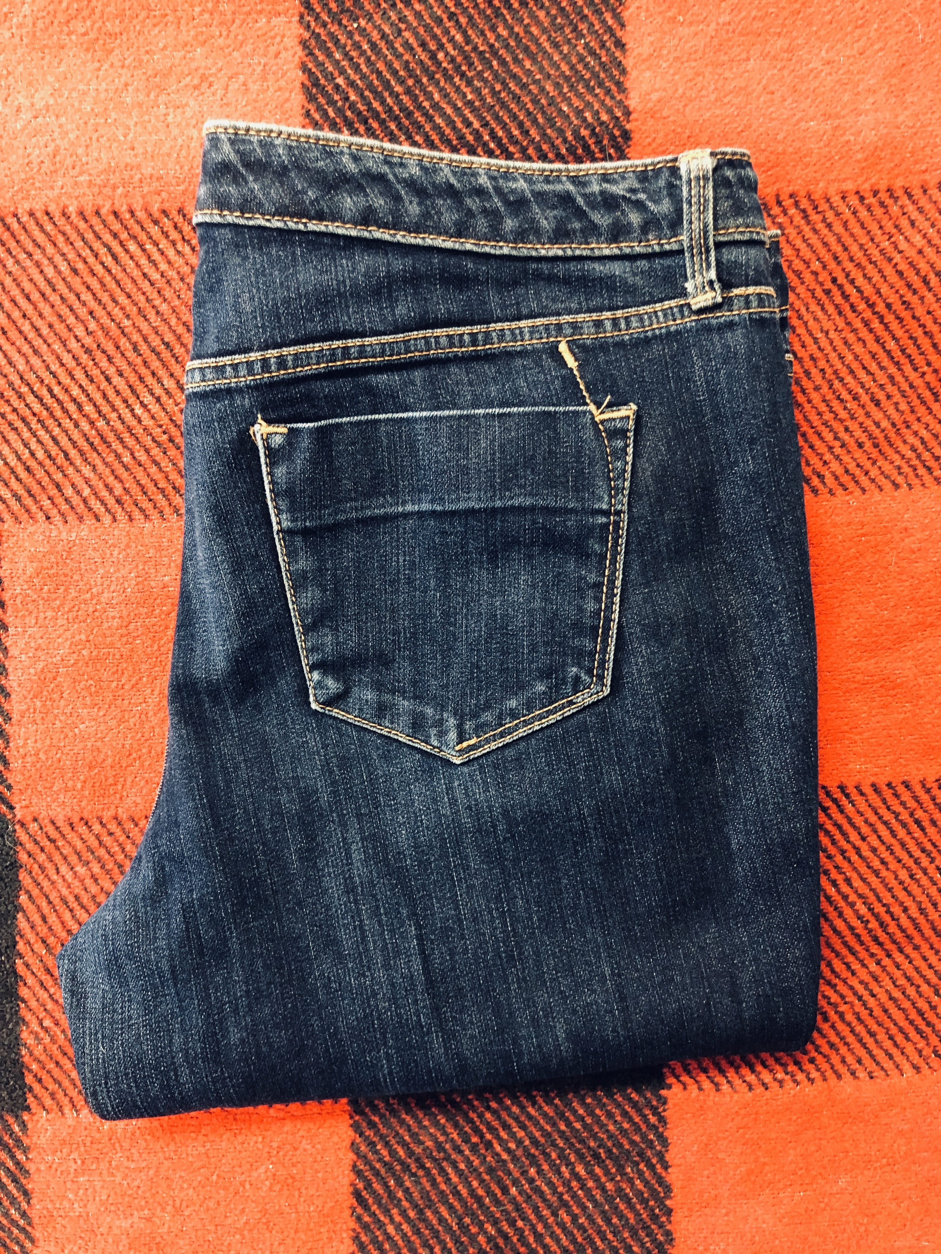 These jeans are a 28 in the waist and are kind of low rise. The only imperfection/flaw is some loose thread by the zipper that isn’t very noticeable when worn.