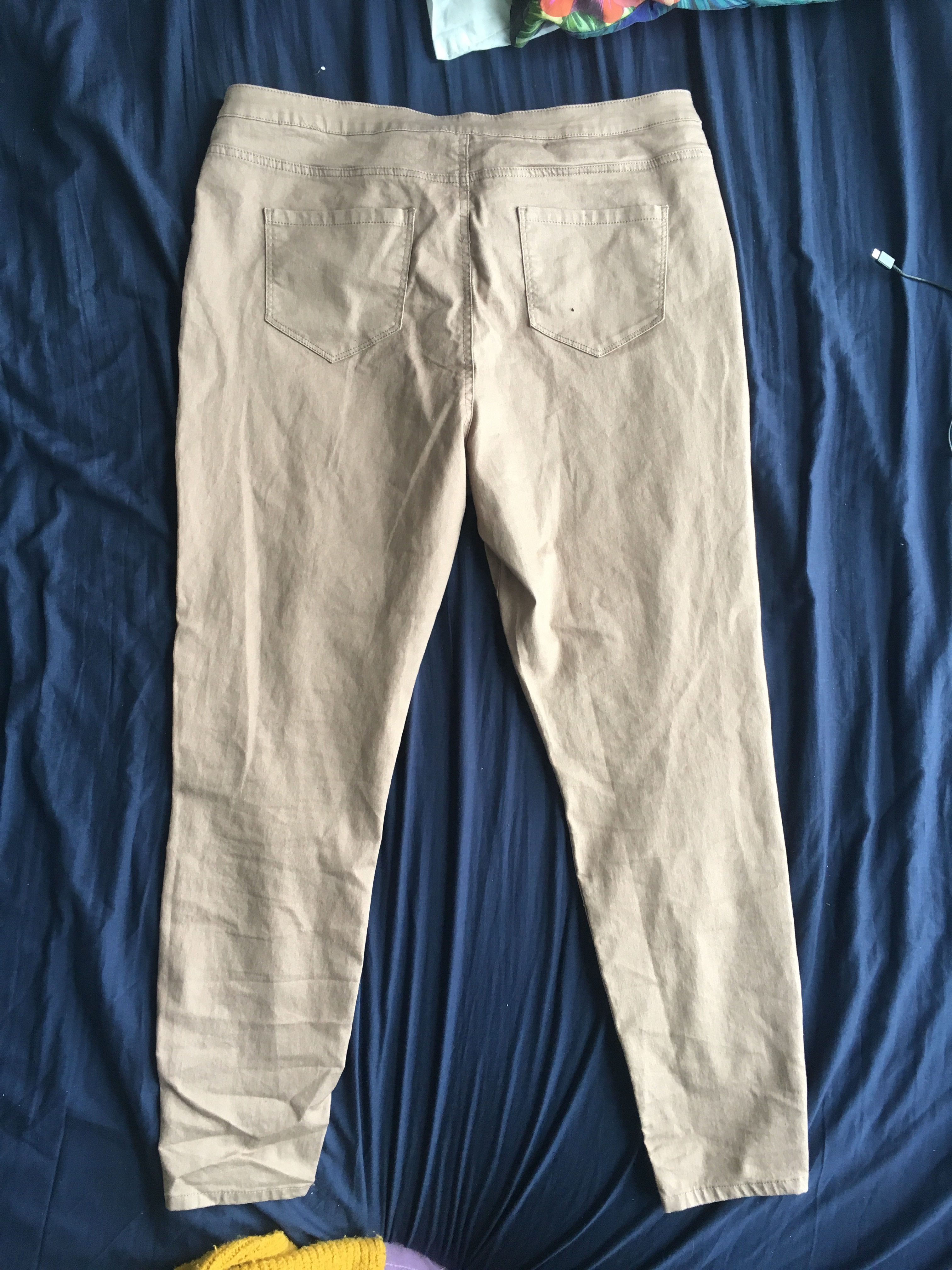 Never worn. High waisted, super comfy skinny jeans. Light wash makes some pretty whiskers around the pockets. The fit makes any butt look nice & sculpted! Size 25.
