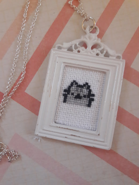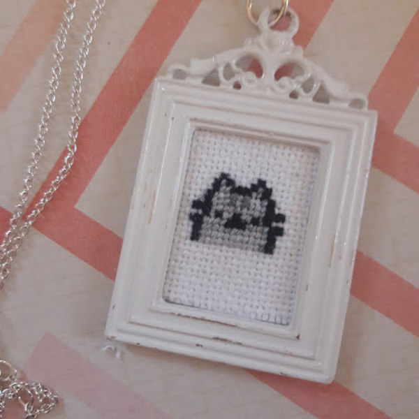 Cross stitch baby Pusheen necklace