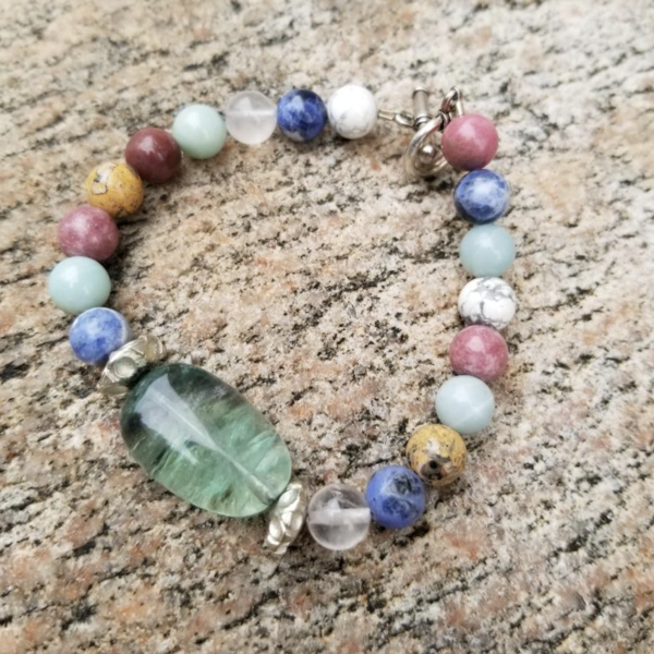 Fluorite crystal and stone bracelet