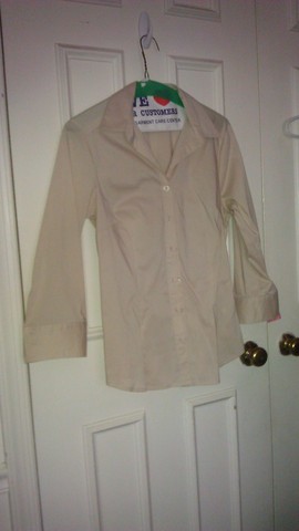 Light tan/khaki colored button up shirt. From H&M, size 8 (medium) Just got back from dry cleaner