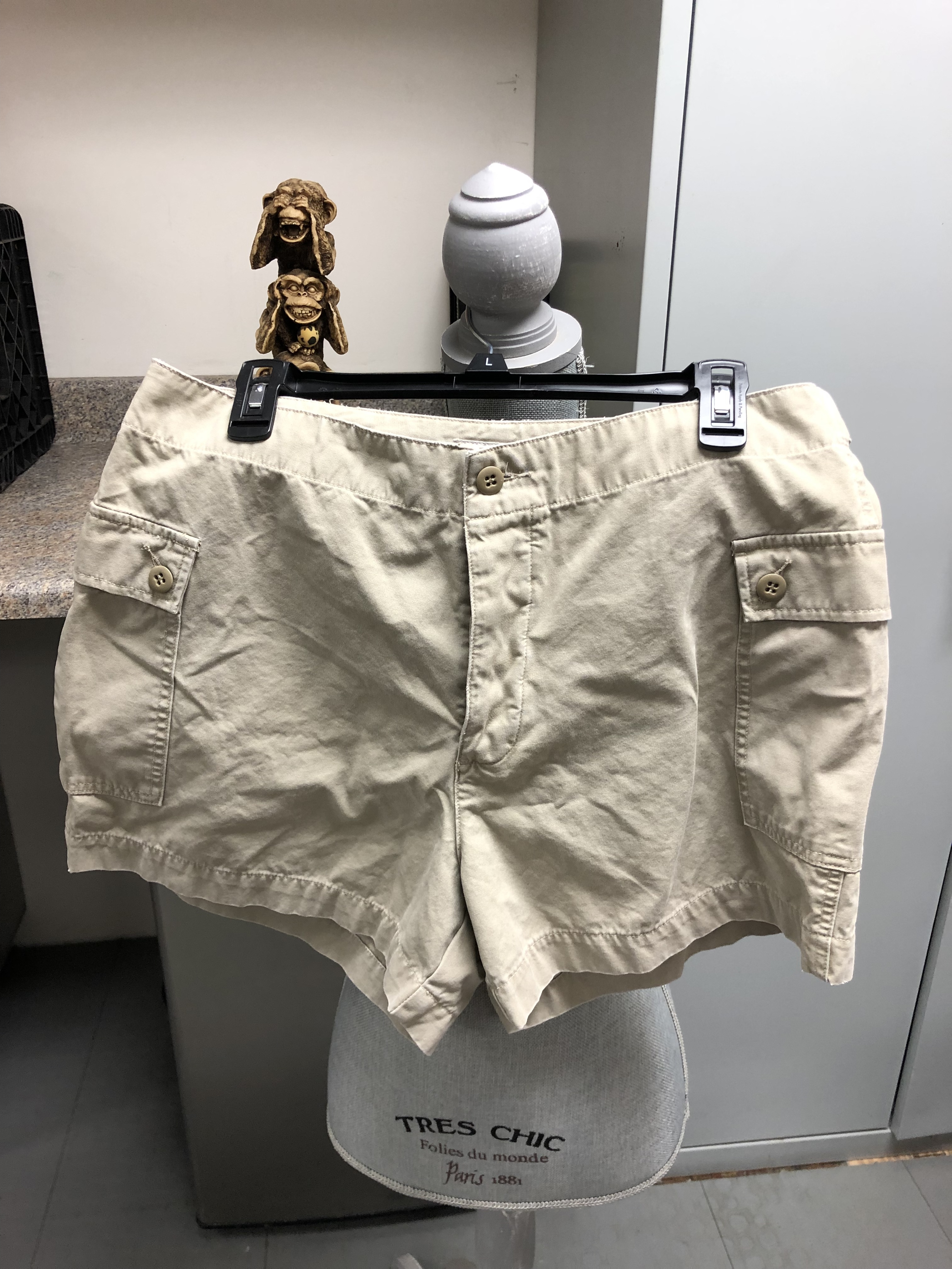 These are some shorts that I got for my mom a few years back. Well let’s just say her shorts wearing days are long over :) She never really wore them. Size 14. J Crew. Lots of pockets. Tan khaki.