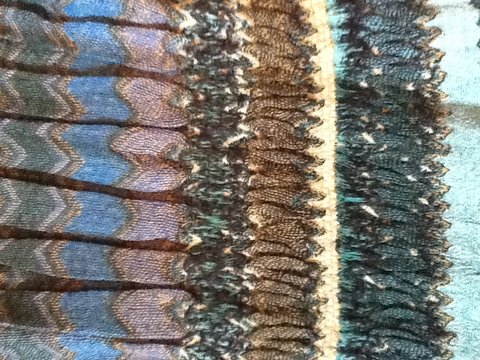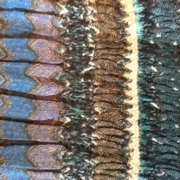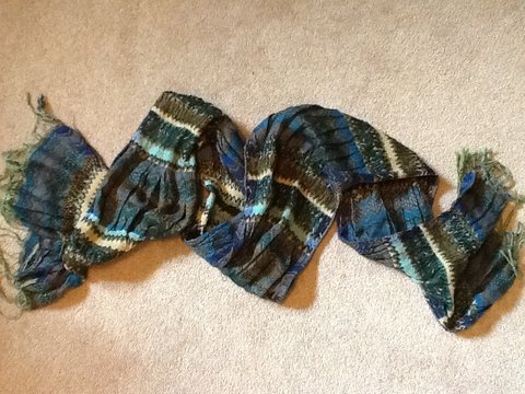 Patterned knit scarf, perfect for approaching winter months! A few stray threads here and there, but nothing to compromise the structural integrity of the scarf (nor the stylistic integrity, for that matter).