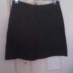 Stretchy, dark grey, mini skirt. It's on the shorter side and looks awesome with tights. It's stretchy and fits small to medium. Perfect for wearing with fall boots