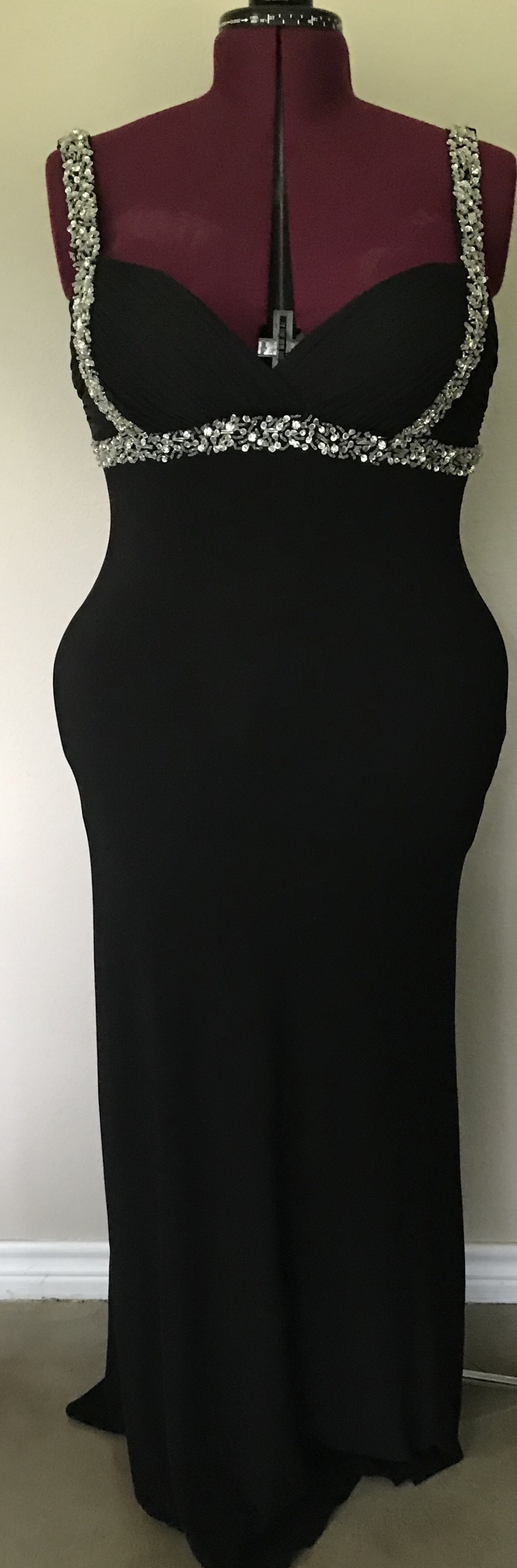 Only worn once, to my sophomore homecoming dance. Black ruches dress with sequin and beading on the chest, spaghetti strap but best worn with a strapless bra or pasties. Stretchy and soft material. Size small. If you would like more photos or information just send a message!