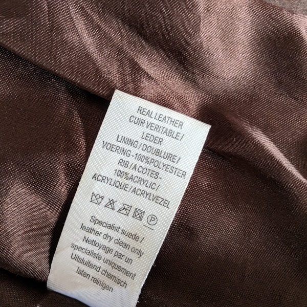Faux leather jacket - high quality and people usually thought it's a real leather. Colour is dark cognac, it's deeper than in photos. Jacket is slightly fitted, size 36 (UK) US4 Excellent condition