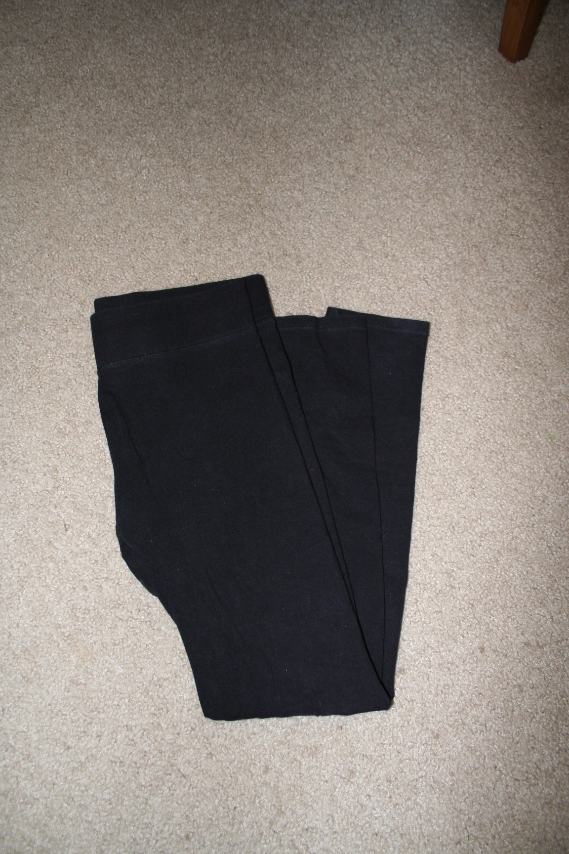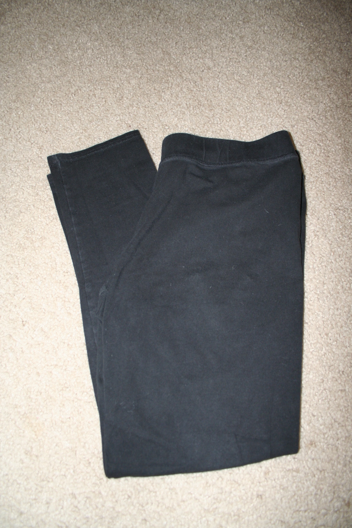 I am looking for black leggings in exchange. I prefer styles with high waist bands, 7/8 length, and straight- legged bottoms. I'm open to different options though!
