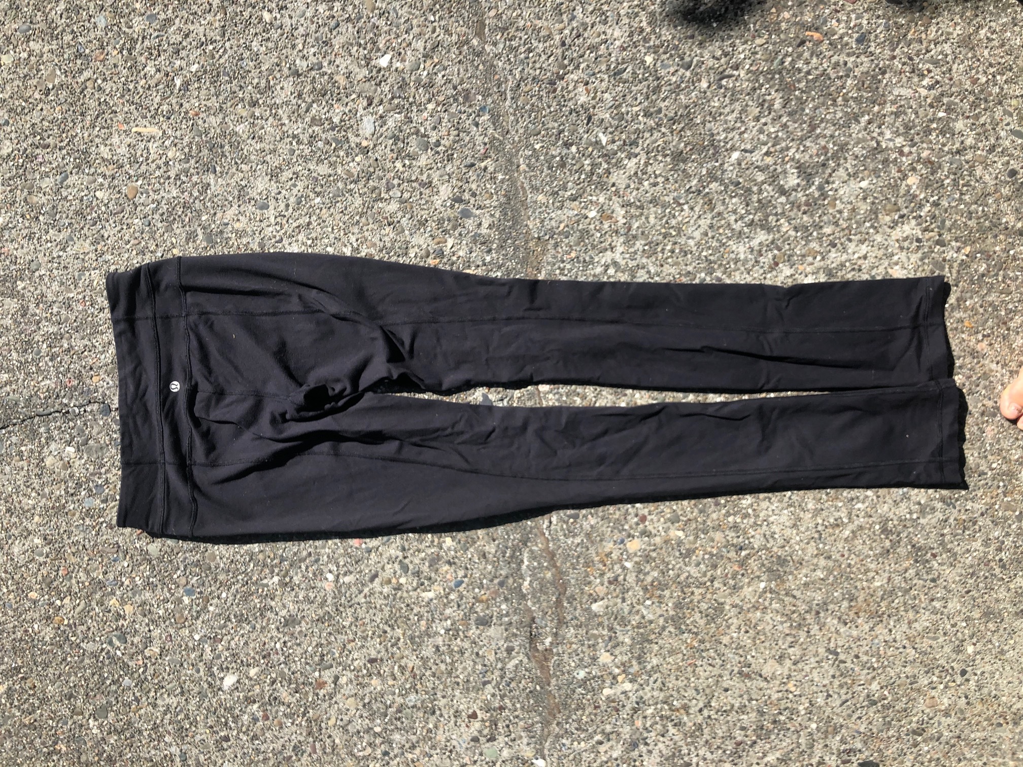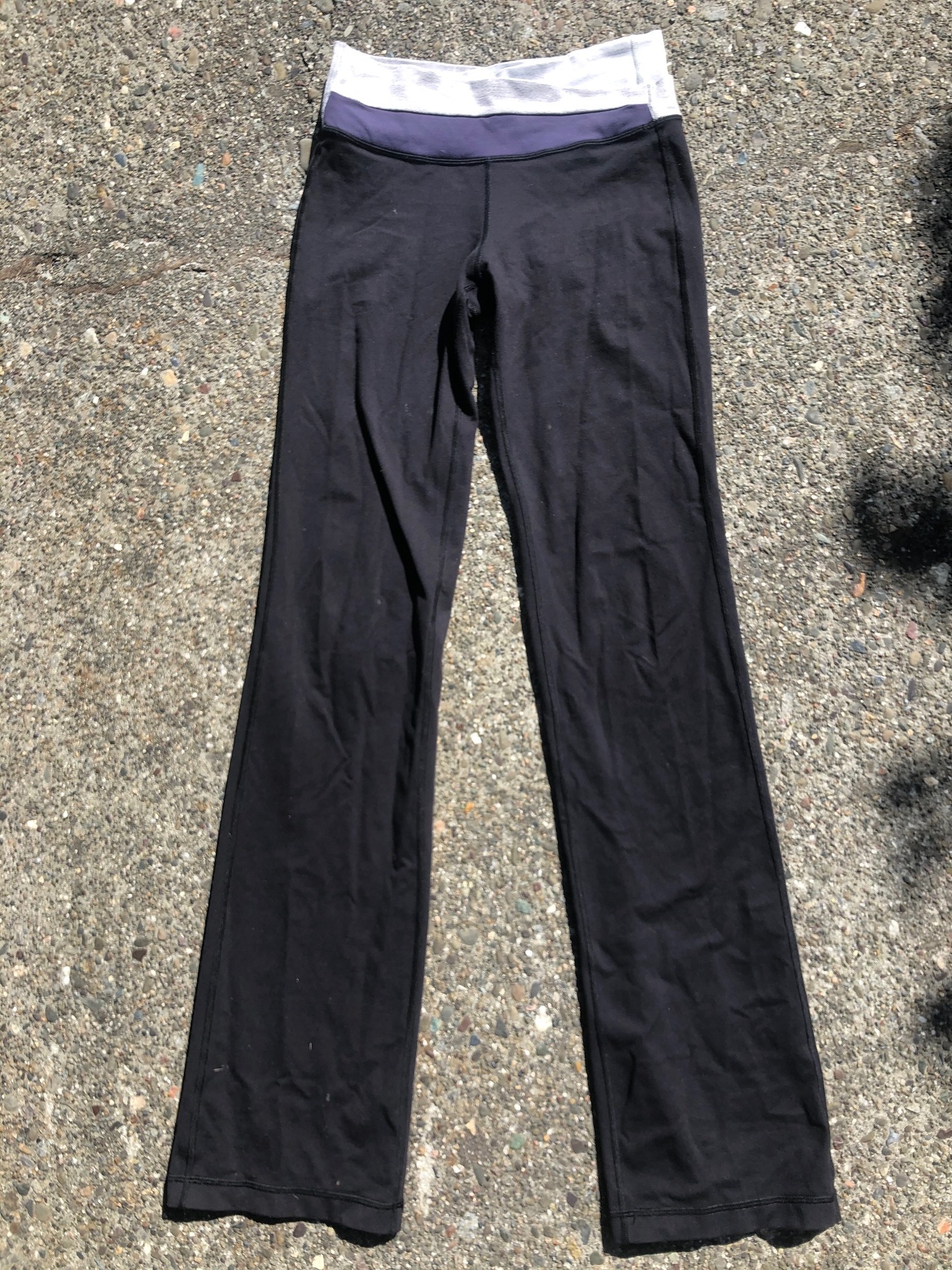 I am looking for high rise, straight-legged yoga pants. I prefer 7/8 length and black color, but am open to other patterns and styles! I'm a size 4 in Lulu, usually a small in other activewear brands.