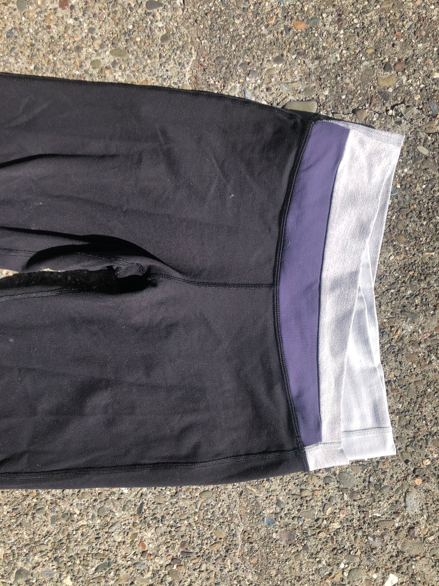 Super cute, EUC lululemon leggings! These are compressive, sweat wicking, and amazing for running and working out. They don't budge if you're moving around and are very functional!