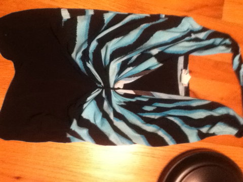 This is a bright blue/ black top. It is really cute. Brand new. I don't go clubbing but its more that style. Someone bought it for me and I never wore it.