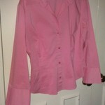 Pink button down with mid length sleeves. Very flattering cut. Tag says medium, would fit very well on a small, too. From New York & Company. Just had it dry cleaned.