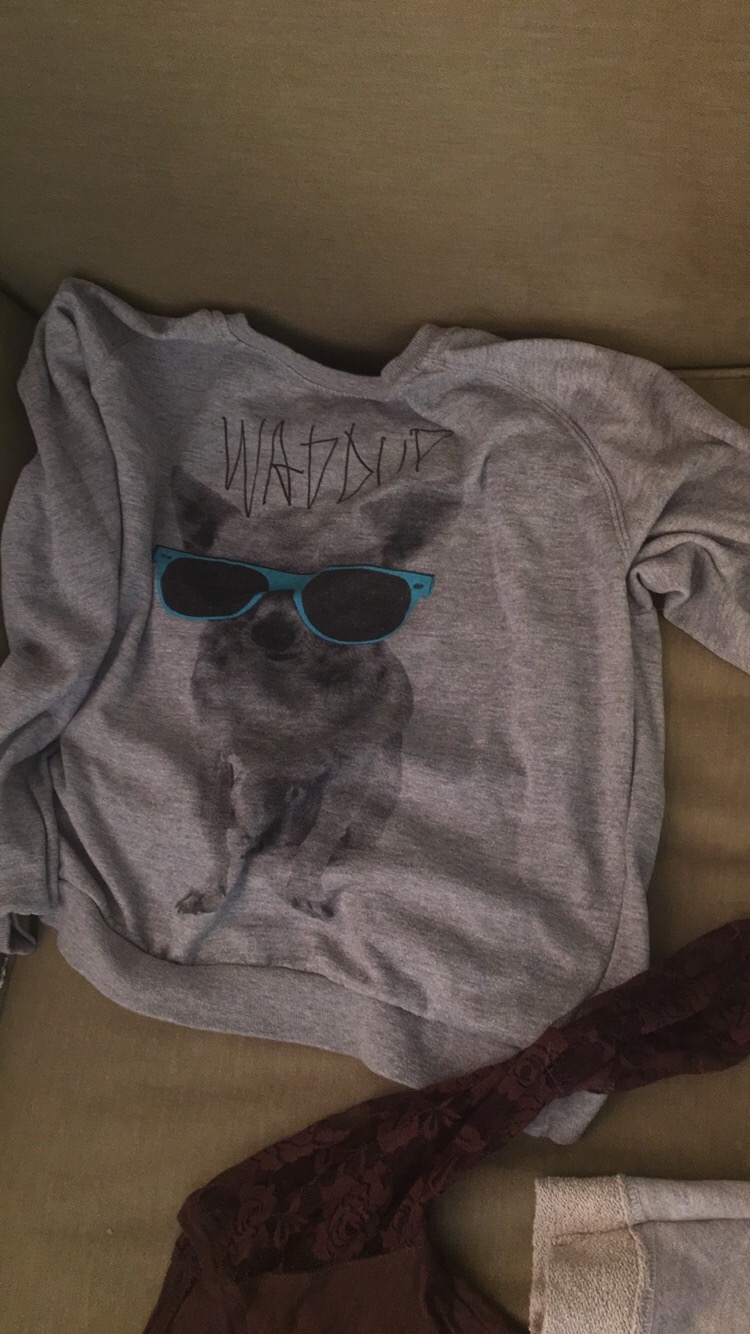 This Valleygirl t-shirt is grey with loose sleeves to give a flowy, cute look and is just the right length, not too short and not too long. It is very versatile and can be worn year-round. This was purchased in the last six months for $10.