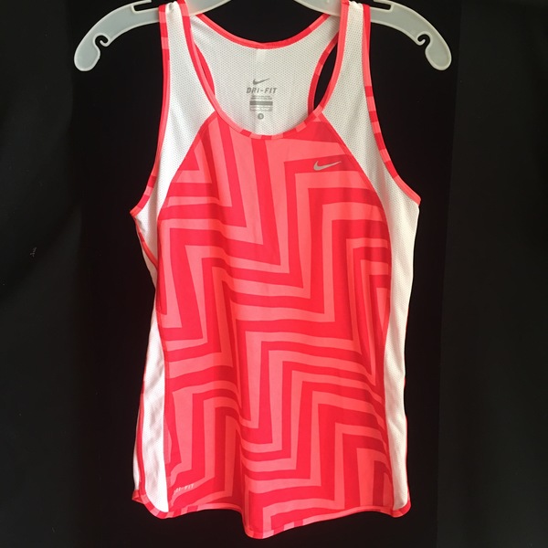 Nike running top is in like new condition, I bought it and never ran! Peach and Magenta design on white.