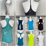 This lot of 9 includes: All size Small. Champion tank is an XS 1- gap Athleta navy blue open back tie cotton stretch 2- Nike dry fit pro white and dark gray T back tank 1- neon yellow mesh detail tank - amazon 1-aqua blue Shein tank top 1- Champion black and red graphic print 2- Adidas tanks blue and gray 1-light blue Victoria secret -White tank is discolored under the arm. - V.S tank -small spot on the bottom left