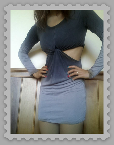 Long sleeve dress with side cut outs. Tye-dye print. A high quality item that has onlt been worn a couple of times. Looks great on. Very comfortable!