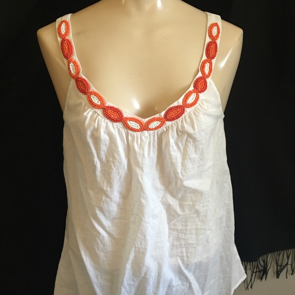 Lovely little orang and white beaded cotton summer blouse in size XS