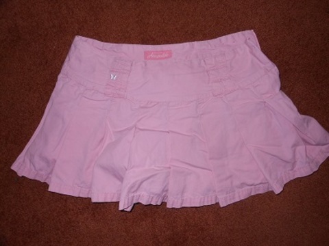 This is a pink tennis skirt (built in shorts). There are no rips or stains and it is well cared for. There is no stretching or really any damage at all.