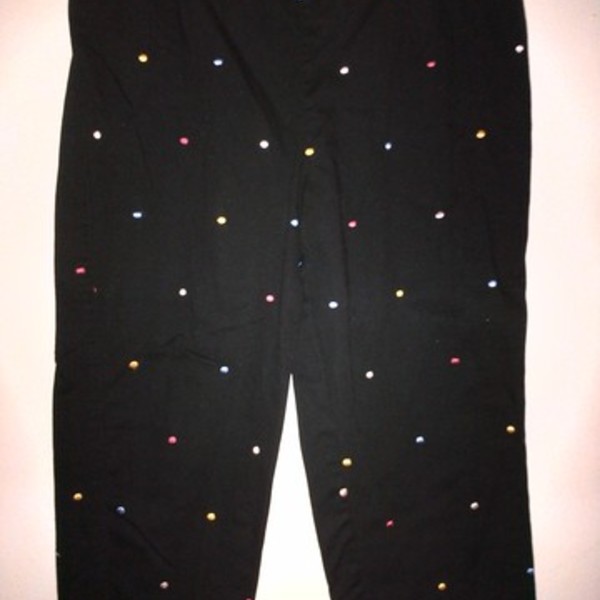 Re-rehash. I like it, but I guess it's not my style and I haven't worn it yet. Sheer black polka dotted top with soft ruffle at the neckline and sleeves. Has an attached black cami for underneath. Very feminine! Size Large.