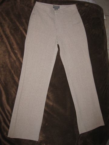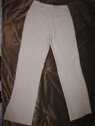 I adore these three-season wool Banana Republic Trousers in a sophisticaticated, versatile shade of heathered tan. (I should know: I'm a "heather"!) These pants are neither yellow khaki nor green drab, but a true neutral tan, flecked with lighter tan and subtle gray in a liner, three- season wool, perfect for any but the hottest days of summer in the South proper and the coldest days of Northeast winter. (Perfect for year-round wear in so many other places!) These trousers are lined and have been professionally hemmed, and can be let out or hemmed further without anyone being the wiser. No side pockets, they have a beautiful slim line, and have back pockets for a professional sillouette. Marked size 0 from Banana Republic, but they fit more like a 2 (or a *very curvy* two). Dry Clean only. Wool/ spandex. Would keep them, but I don't need so many suits or work trousers with my current position. Do you? They're so comfy with their thin waistband, you'll never know you look uber-professional!