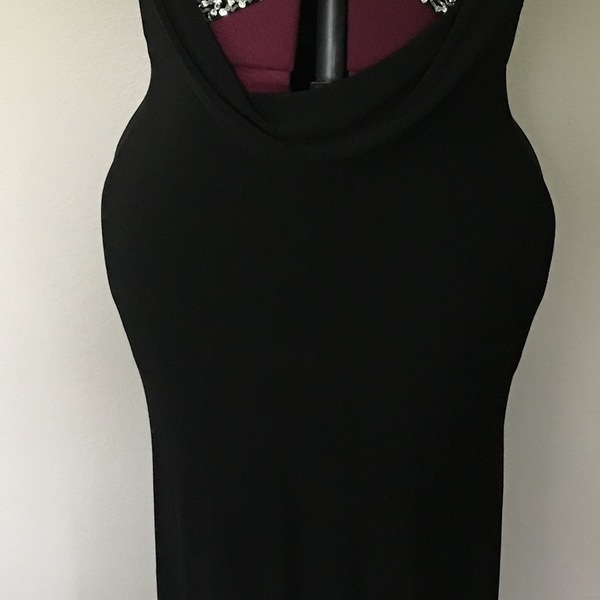 Very pretty dress. satin bottom & velvet top w/ beading. Has a few wrinkles from storage, but one trip to the cleaners will take them all out with no problem. Worn only twice. Fits very well.