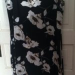 the photo doesn't show it, but this dress does have a nice flirty shape to it once tied in the back. brown/black/white. easy to either dress up or dress down as a shift dress untied- it hits above the knee and the neckline hits a bit below the collarbone. i wore it once to a wedding.