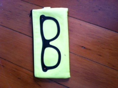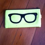neon yellow highlighter color w/ nerd glasses graphic. wallet/small pencil case maybe. has a couple pen marks otherwise good condition :)