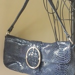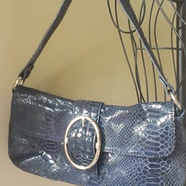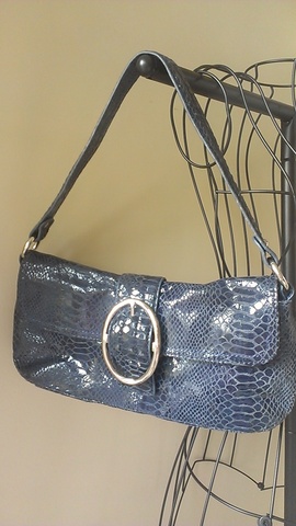 Really Cute Blue Alfani real leather snakeskin pattern bag Comes from smoking home, cleaned well before mailing but be aware before requesting rehash.