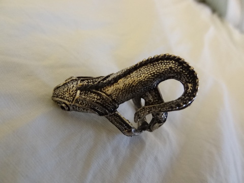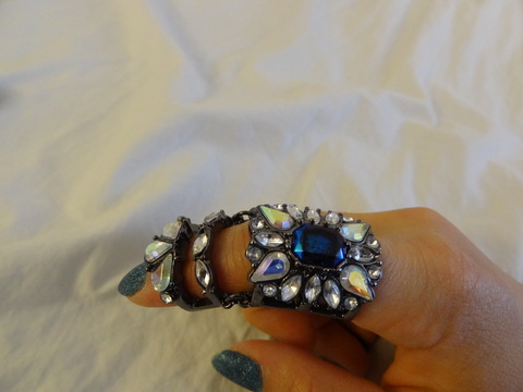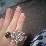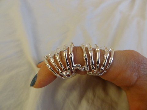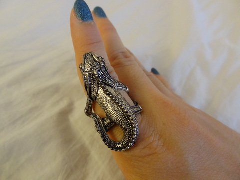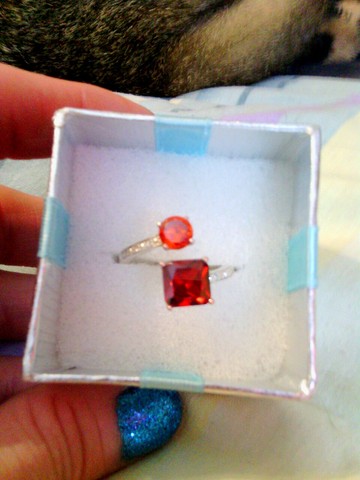for christmas i got this ring and never got a chance to wear it , its very cute , and the band is stretchy and can fit almost all ring sizes ! home you enjoy ( :