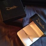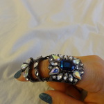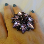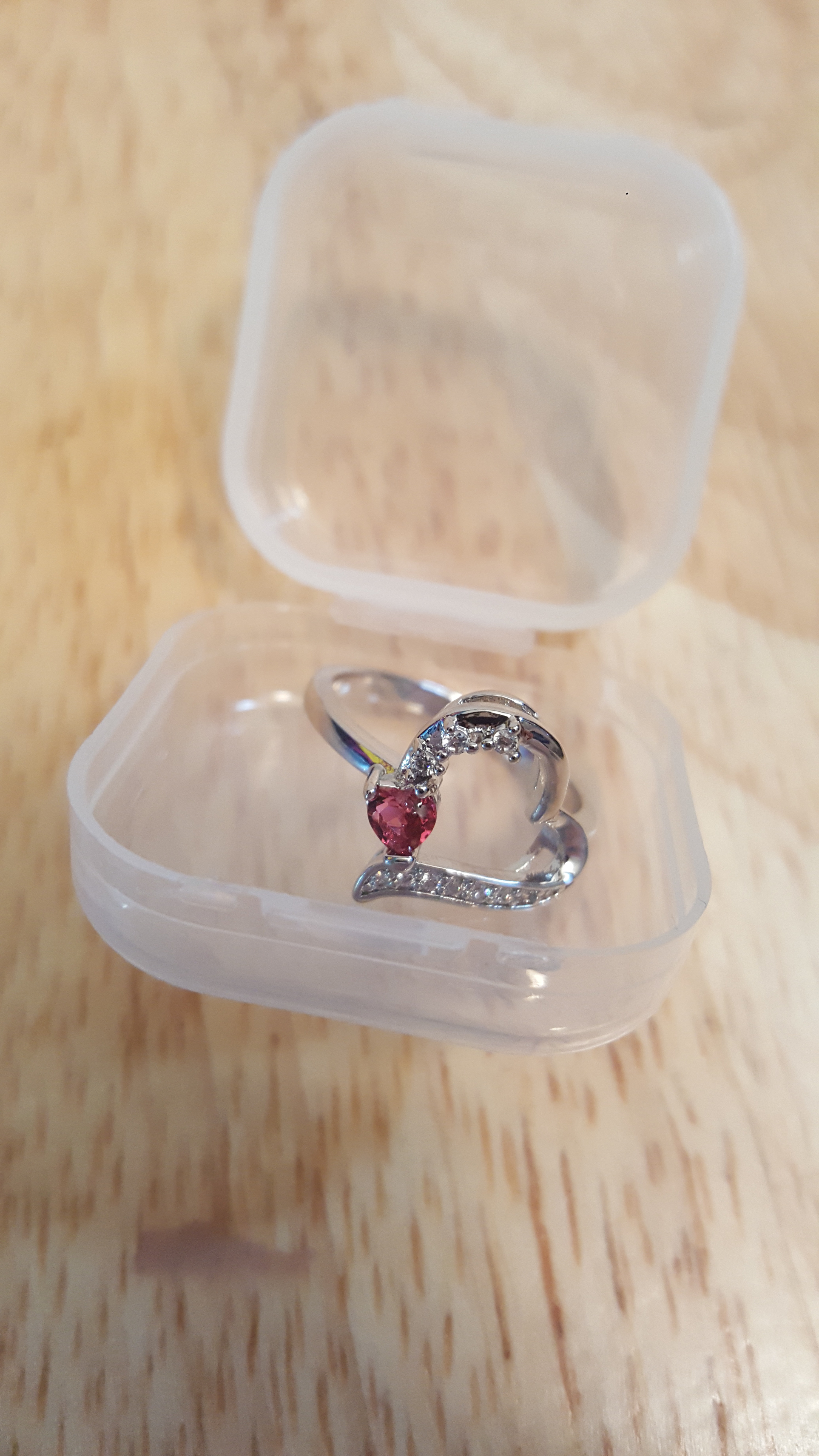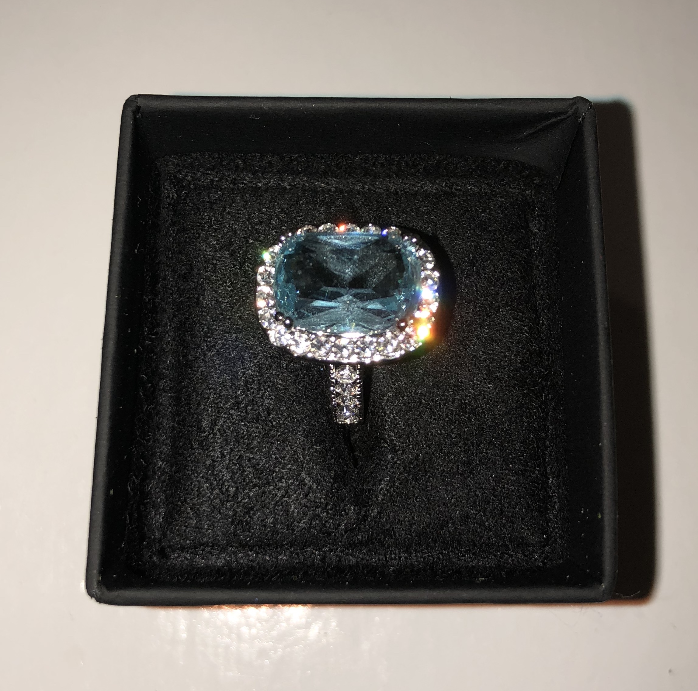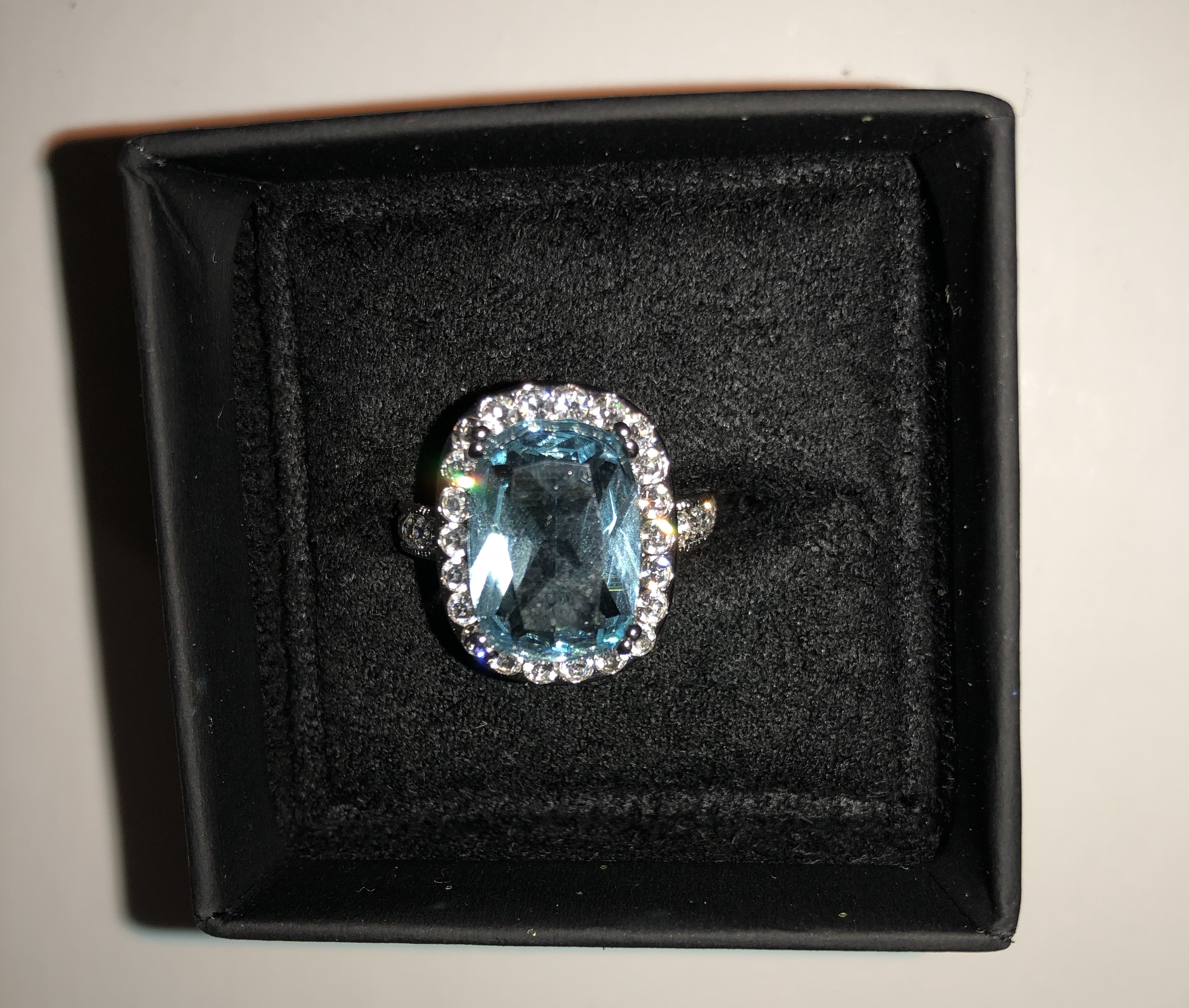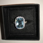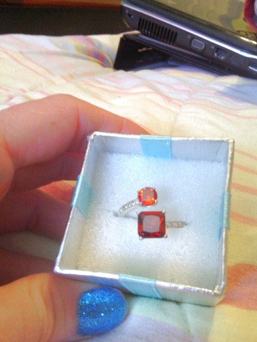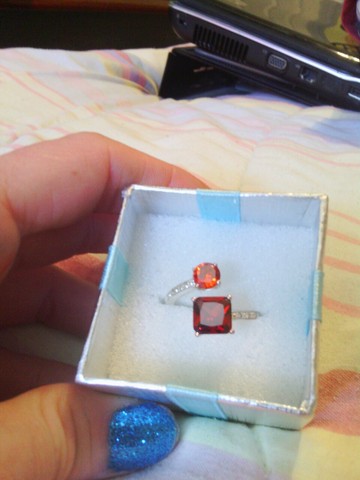 I was given this as a gift from a friend. Sadly ithe doesn't fit me ): It's a size 8 and never been worn. Comes in original packaging. The ring itself is sterling silver. Stones aren't real but look close too!(: