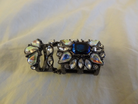 Silver and rhinestone bow ring. The bow is about an inch wide.