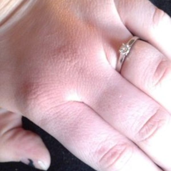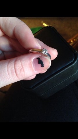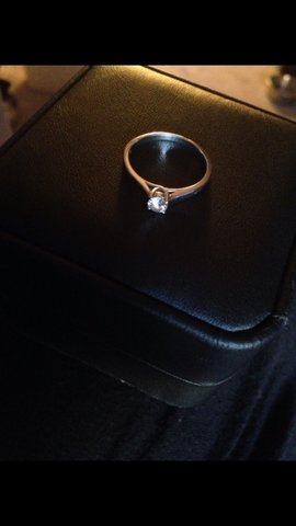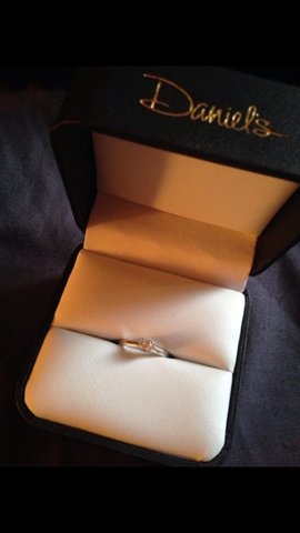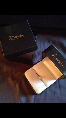 Worn for 9 months, wedding didn't pan out... I kept the ring. From Daniels Jeweler. Original price was $699.99. 14K Gold and Diamond. Near colorless. Royal quality. Size 7, can be resized. Diamond is 1/4 caret I believe.