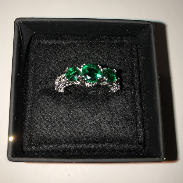 Sz. 6 Sterling Silver Ring with three simulated emerald stones. New!