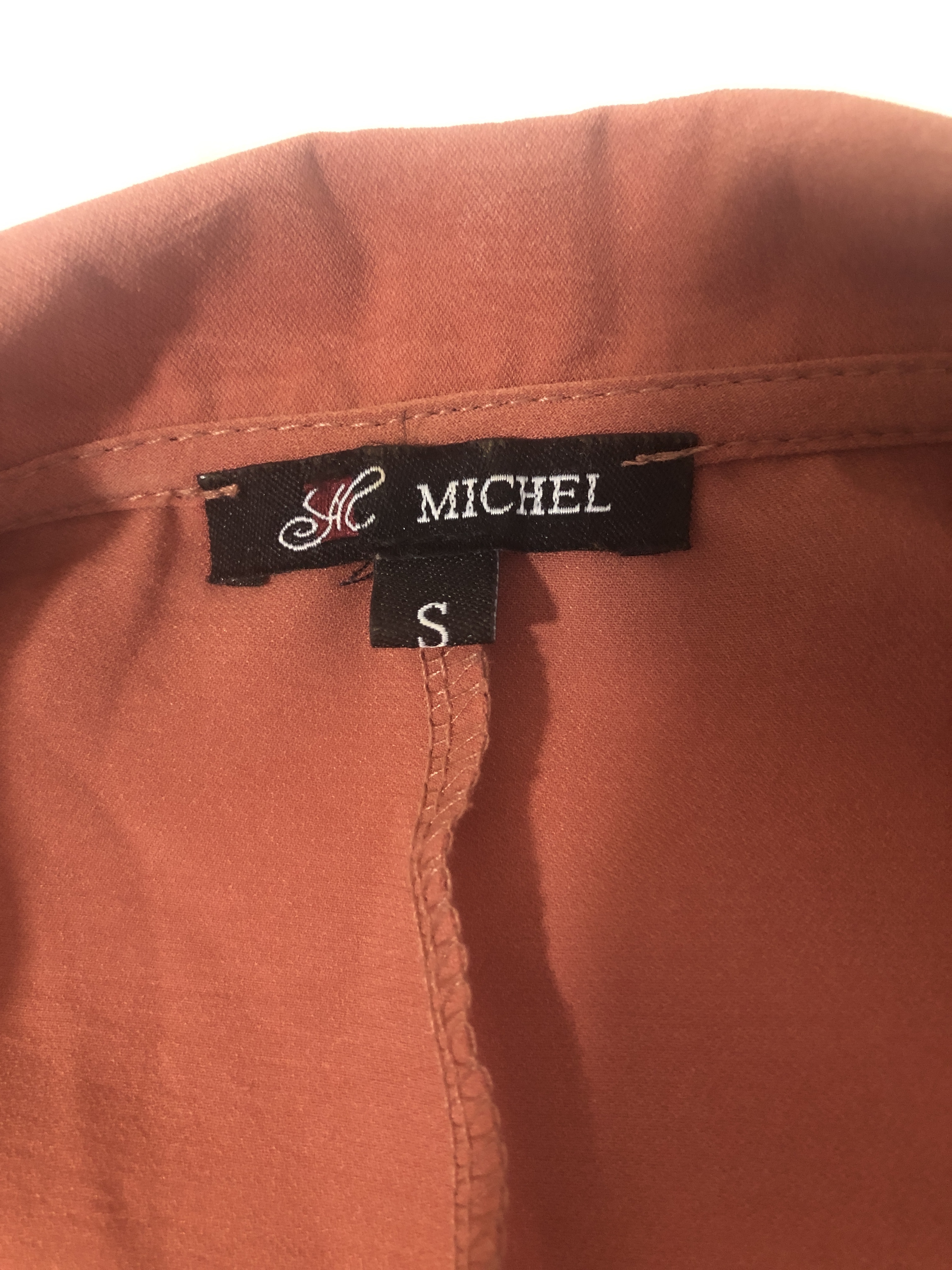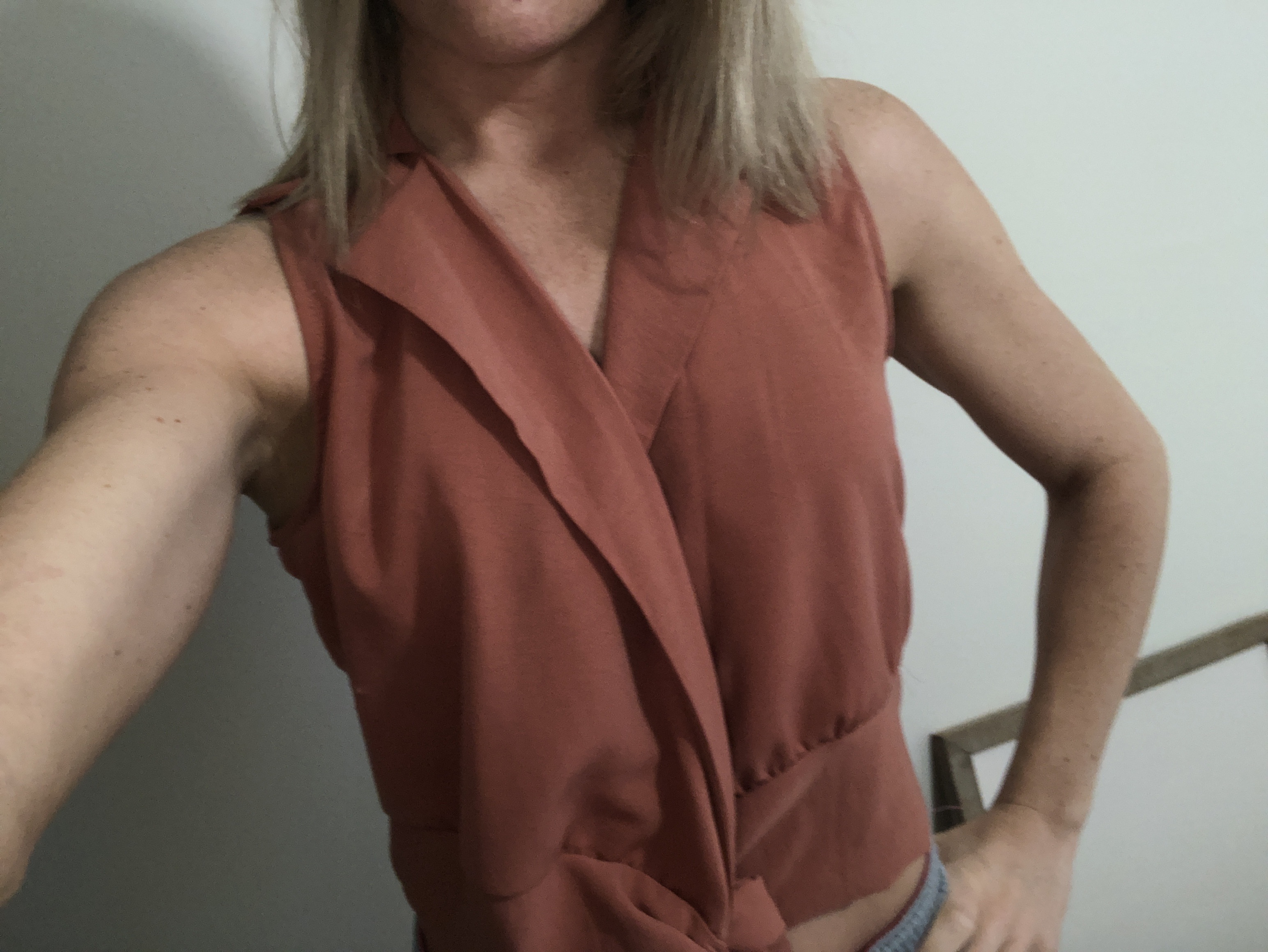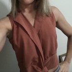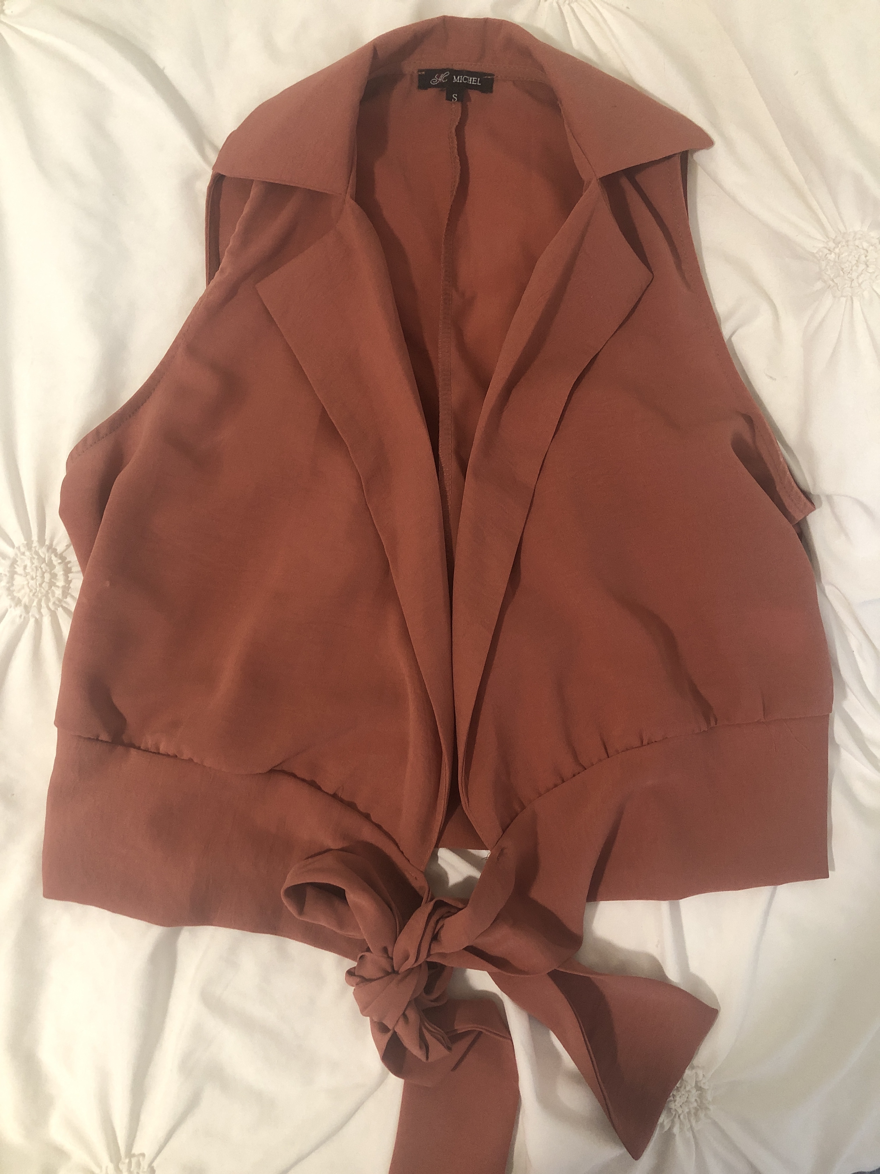 Dusty rose-colored blouse. Size small, sleeveless, with a tie in the front. Cute and feminine.