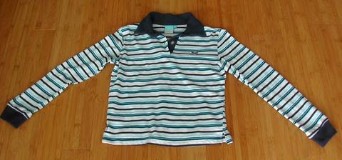 Purple & grey striped Roxy shirt. It's pretty long.