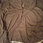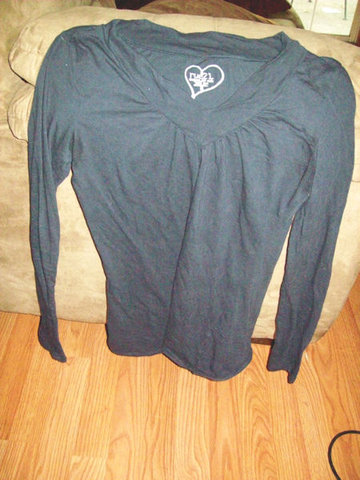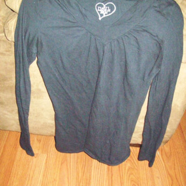 In great condition, has a low cut collar with pleating coming off of the collar. Long sleeves but very light material. Pic makes it look faded but it really is still as dark as the day it was bought.
