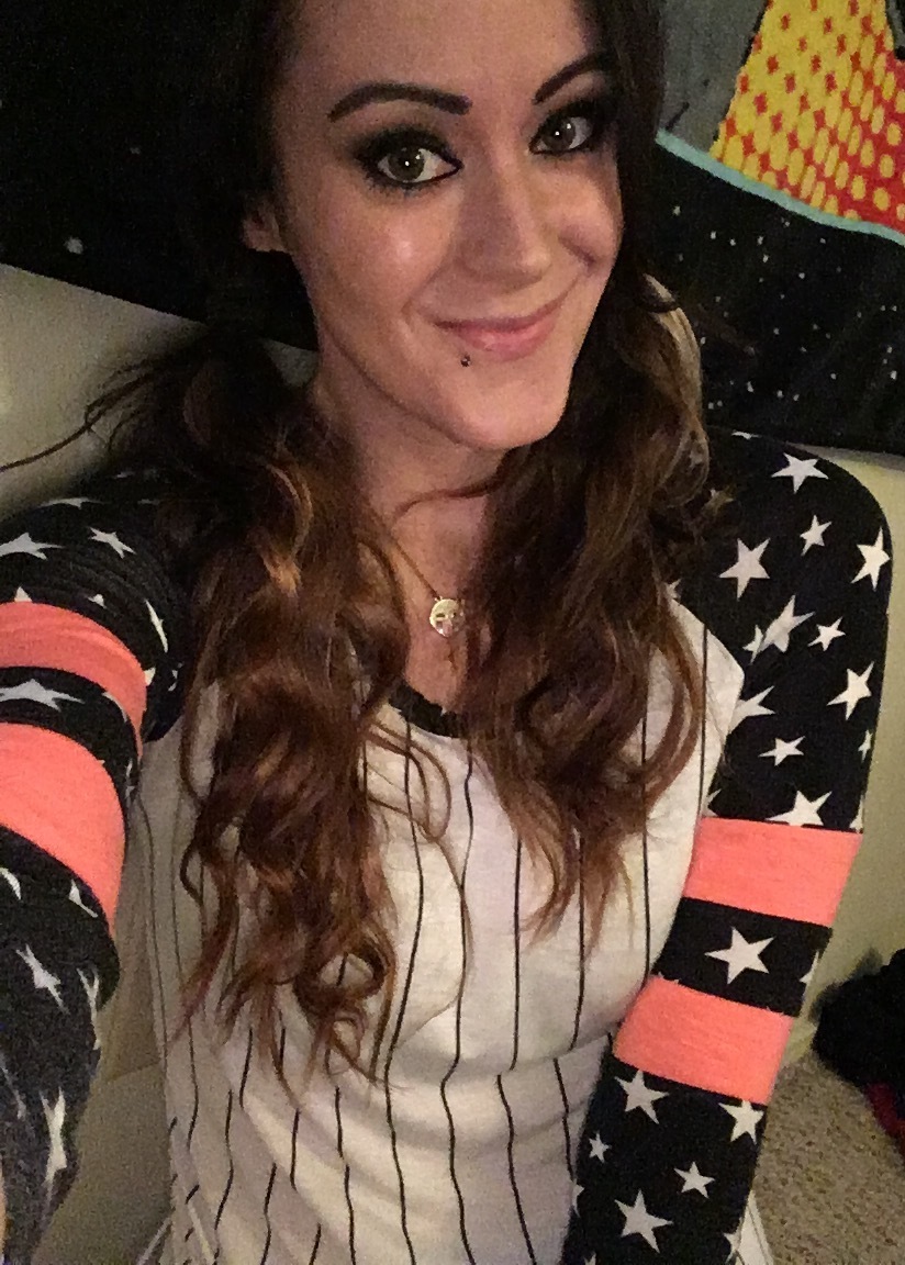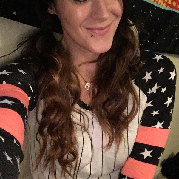I usually wear a Medium but I bought this Small top from Rue 21 because it's adorable! It fits well but it was for the 4th of July - I already bought a new on for this coming year!