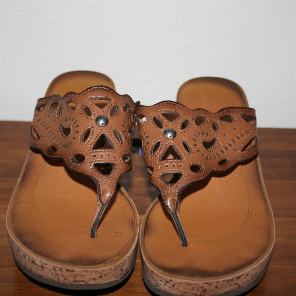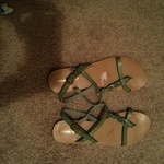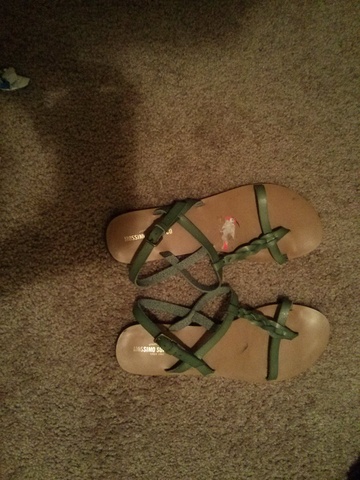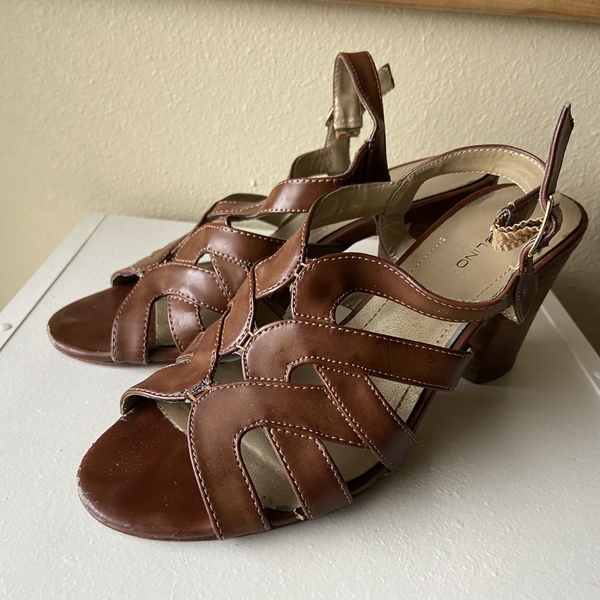 These have been worn many times. But they are still in relatively OK condition. Very comfy strappy heeled sandals.