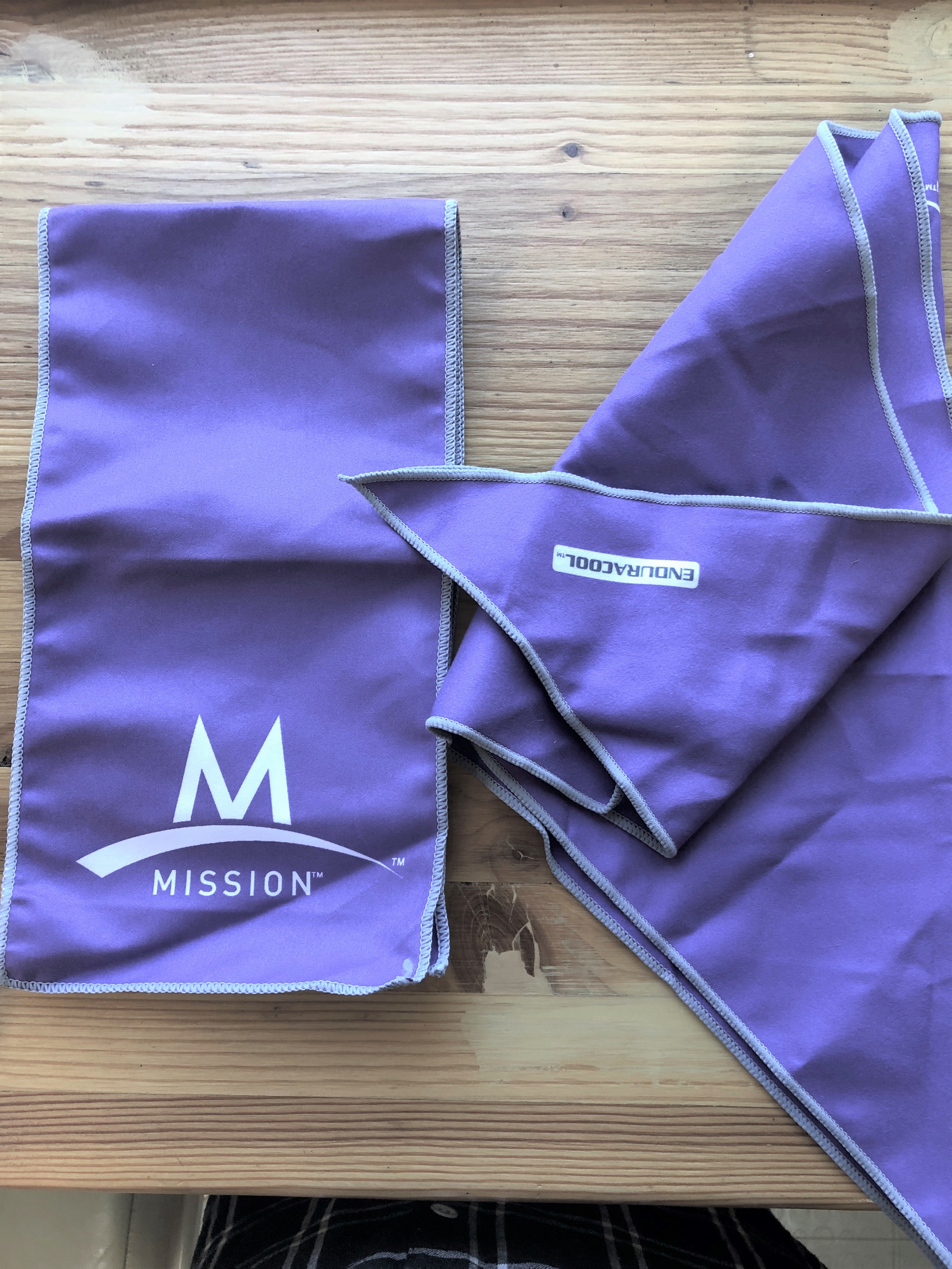Brand New ENDURACOOL Mission Instant Cooling Fabrics. There are two scarves. One is triangle and one rectangle. Worth $20. The color is purple (more like the last photo).