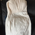 Wow Couture champagne dress says M but its probably an XS. I can take measurements if needed. Top is lined, skirt part is not lined. Brand new without tags. Will need some steaming to smooth out some wrinkles.