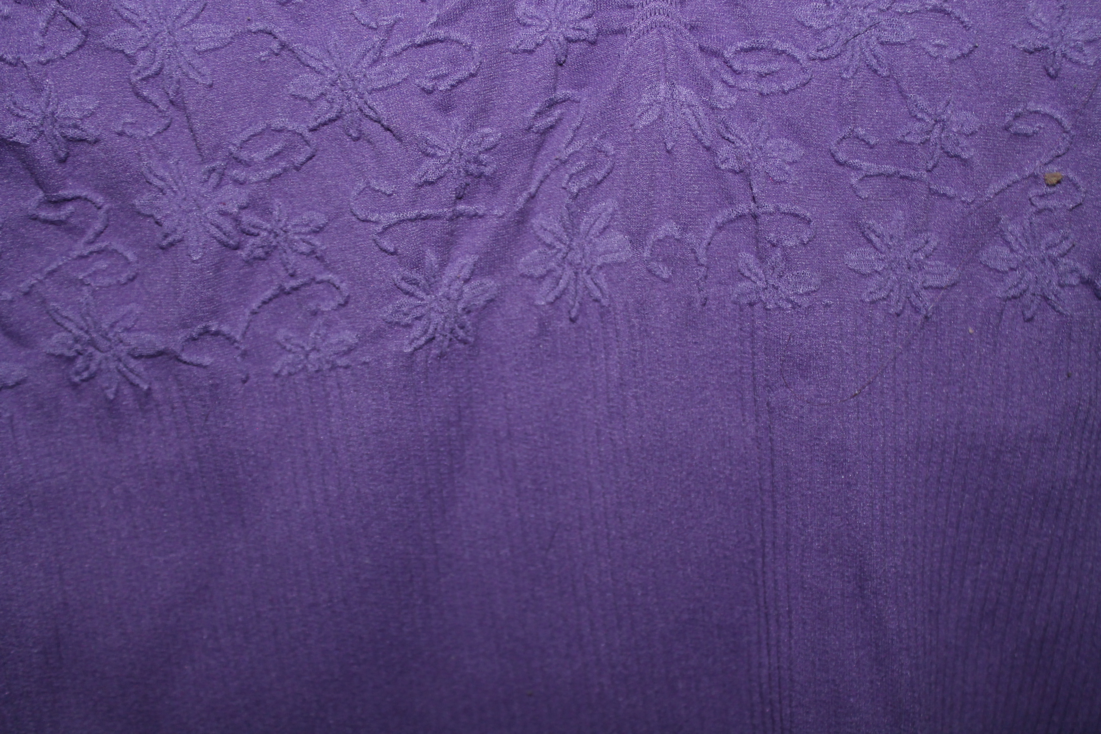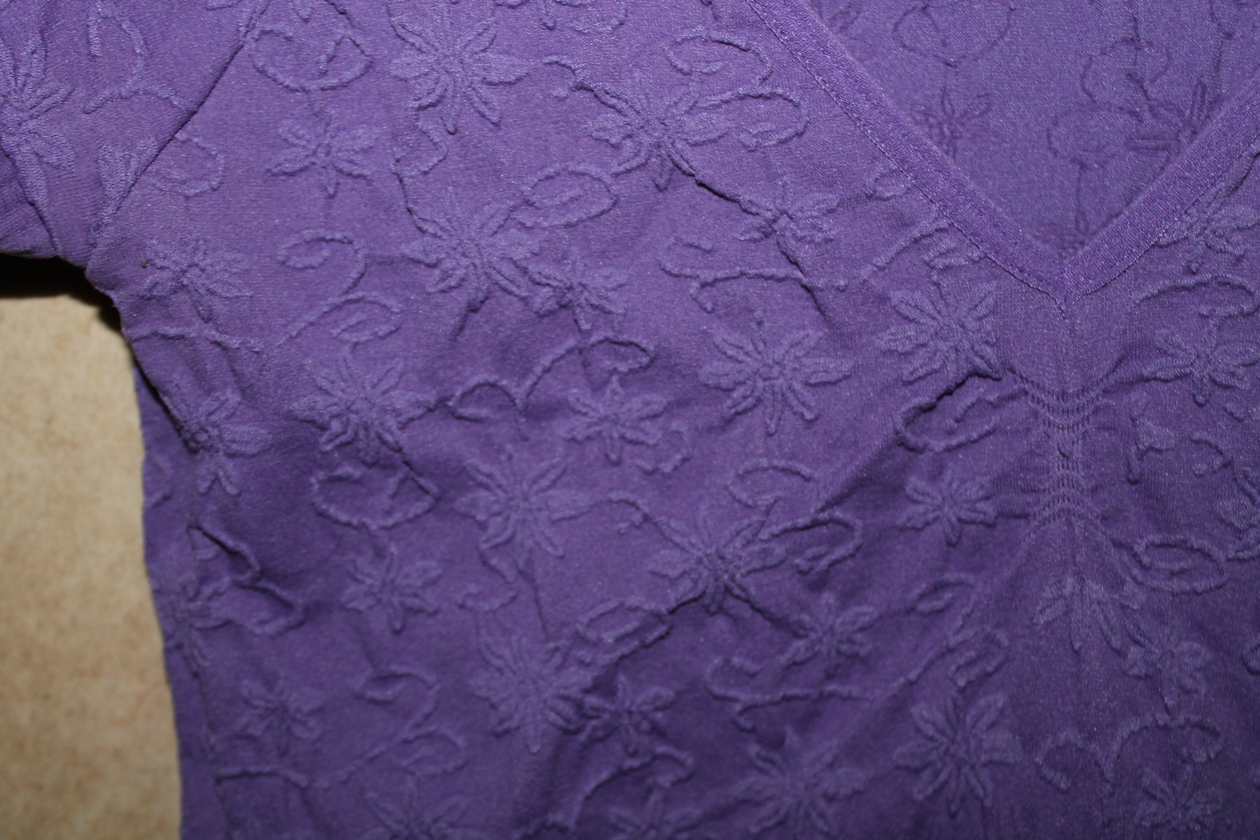 S/M Purple Shirt Indented Floral Design with Contrast Indented Vertical lines