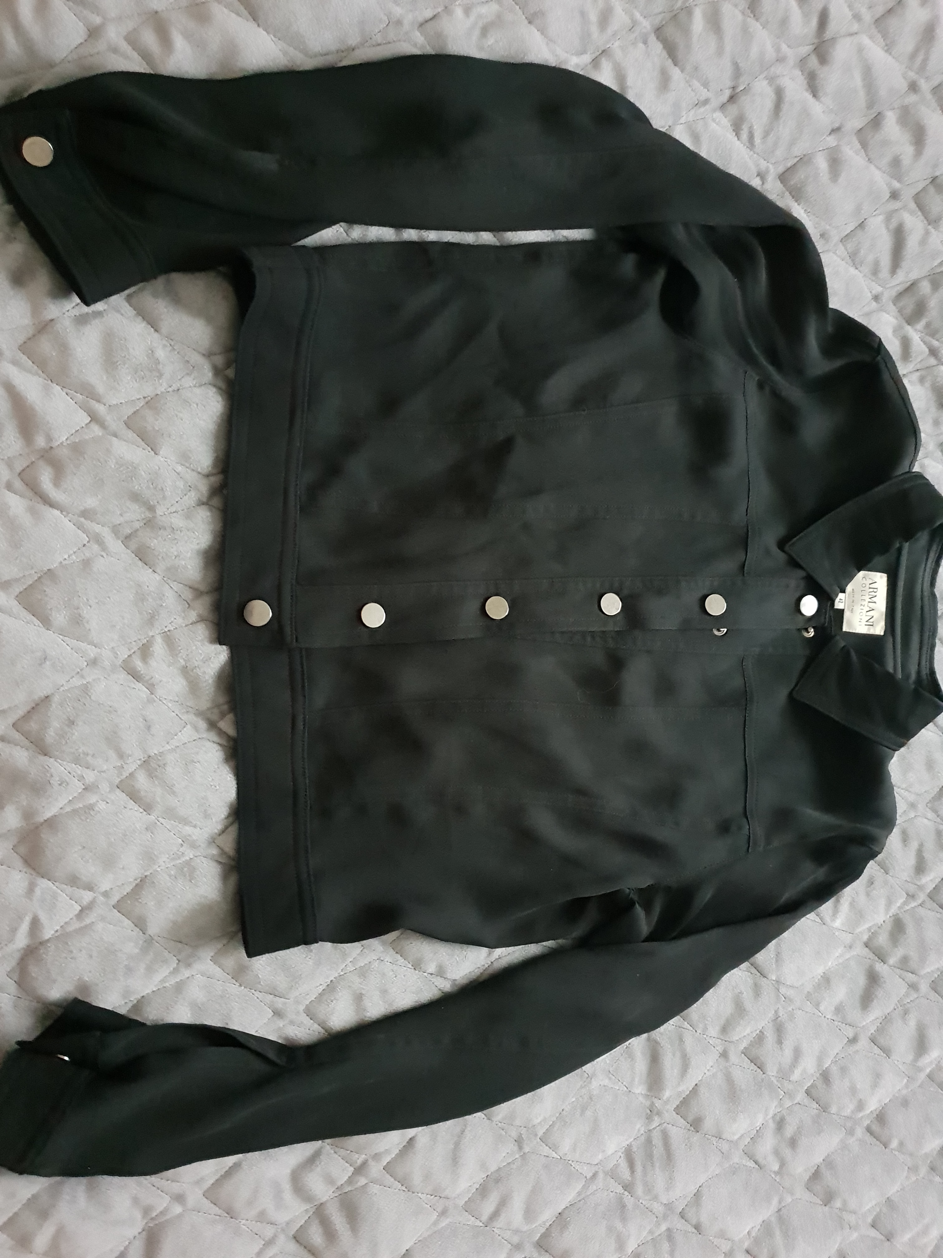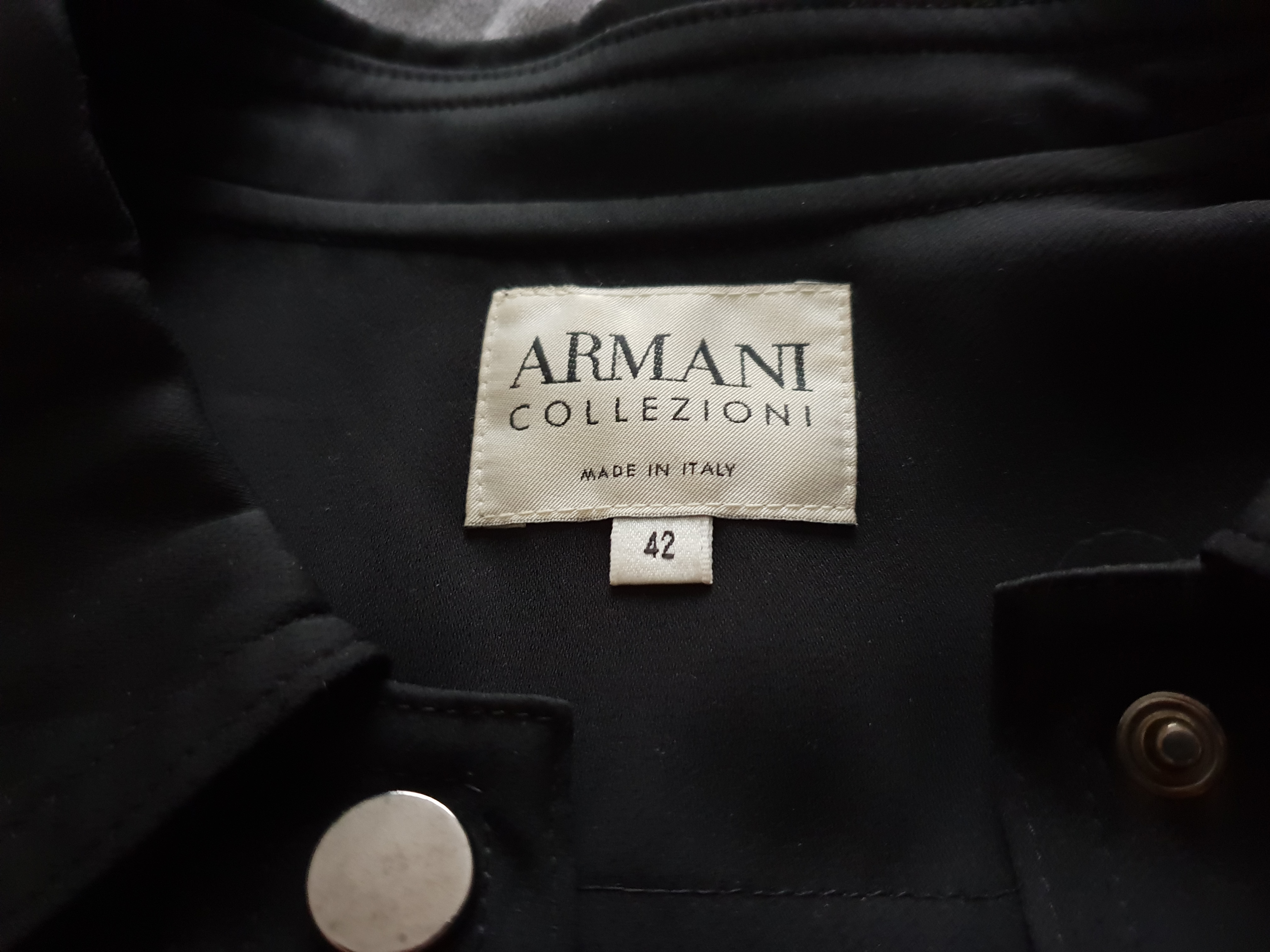 Armani Collezioni shirt in good condition. Size 42 on the tag. I wear size 36/38 and it was perfect for me as a loose shirt to put on T-shirt or dress. 52% acetate 28% nylon 20% silk