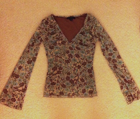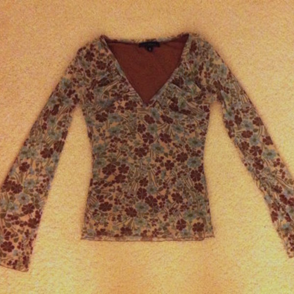Beautiful floral sheer blouse with slits on sleeves. Perfect for any season.