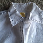Very thin, semi-transparent, button up top with "caged" cut out look around the collar bones and shoulders