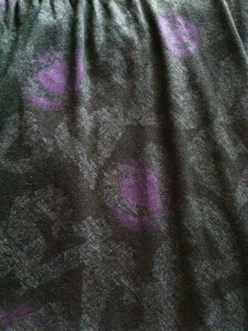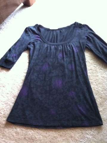 quarter length sleeves. very cute with grey and purple hearts on it.
